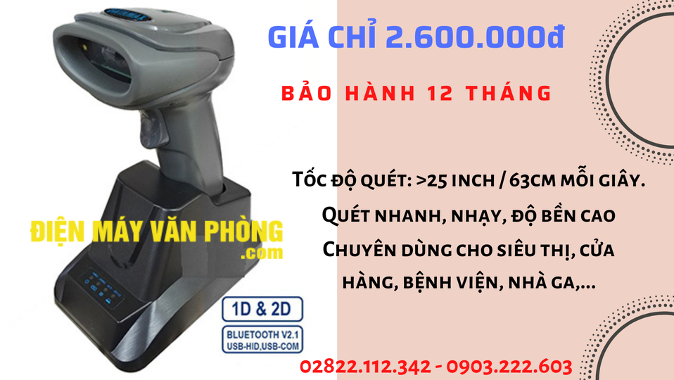 Máy đọc mã vạch không dây Syble XB-5055R/1258W [1D Xả Kho]